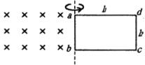 ,电阻为R.ab边是固定转动轴,它恰位于有界匀强磁场的边界处,磁感强度大小为B.某时刻线圈位置如图所示,磁感线垂直线圈平面,方向向里.线圈绕固定转动轴匀速转动,角速度大小为