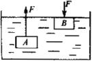 例题2 :如图所示体积不同,重力不同的A、B两个物体浸没在水中.用绳系住A物,拉力为F时A物体静止.用力F压B物体时,B物体也静止,若将A、B两物固定在一起放入水中,它们将( ).