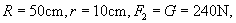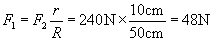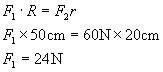 例 1 辘轳的摇臂半径是50cm,轴半径为20cm,要用它匀速提起60N的水,在摇臂上至少要用多少N的力?
