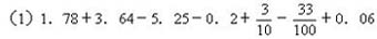解:(1)原式=(1.78+3.64+0.3+0.06)-(5.25+0.2+0.33)