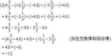 说明1.加减混合运算写成代数和形式后,最好把所有符号都看成是性质符号,看成是数的一部分,不能与数分开,在运用加法交换律时带着符号一起“搬家”,这样可避免产生错误.