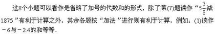 说明:1.比较以上两种计算方法,显然方法二简便,但要采用方法二,则必须掌握去括号的法则,不掌握去括号法则的学生,只能用方法一.
