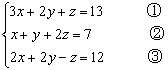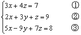 分析:(1)比较此三元一次方程组与以前学过的有什么不同?(三个方程都含三元)