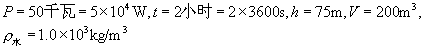 例1 有一水泵,它的电动机功率为50千瓦,能在2小时内从75m深的地方抽出200