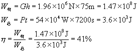 的水,从地下深75m的地方提到地面上,它所做的功就是有用功,而水泵的电动机功率与做功时间乘积就是总功,然后由