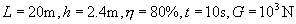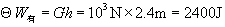 例5 斜面长20m,高2.4m,其效率为80%,某人在10s内沿斜面