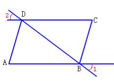 分析:从图形可以先猜想出可能是AB∥CD,也可能是AD∥BC,但是我们发现AD和BC与题目的已知条件无关,这是一种对图形的认识,那么怎么才能构造出我们判断平行的条件呢?这就需要对∠1、∠2进行等量代换.显然∠ABD=∠1=∠2,所以AB∥CD故选A