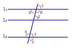 ∴l1∥l2∥l3(如果两条直线都和第三条直线平行,那么这两条直线也
