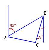例3、一个人从A点出发向北偏东60°方向走到B点,再从B点出发向南偏西15°方向走到C点,那么∠ABC等于: