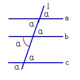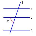 例1、如下图,a∥b∥c,直线l与a、b、c相交,那么与∠α相等的角有: