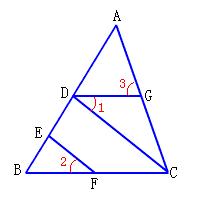 分析:首先从已知不难发现EF∥CD,再从平行的性质可以找到∠2的同位角∠DCB,此时本题的思路就基本打开了,∠1和∠DCB是内错角,所以DG∥BC.