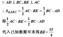 说明:本题的关键是通过三角形的面积公式,获得了一个关于BE的方程.这种方法――“等面积法”是求线段长度常见的一种方法。