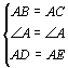 分析:注意到题中所给的条件AB=AC,得到三角形为等腰三角形。利用等腰三角形的性质对问题(1)可得