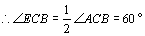 例2.已知:如图在△ABC中,AC=BC,∠ACB=120°CE⊥AB于D且DE=DC。