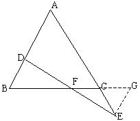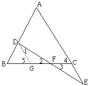 例6.如图,在△ABC中,AB=AC,D在AB上,E在AC的延长线上,DE交BC于F,且CE=BD,