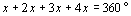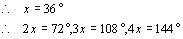 解:设这四个角的度数分别为x、2x、3x、4x,由四边形内角和360°,得: