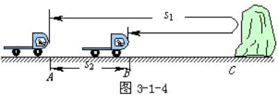 解析:遇到这样的问题可借助示意图分析汽车运动与声音传播的过程,如图3-1-4所示,汽车在A鸣笛,经过4s听到回声,声音从A®C®B,传播距离为:
