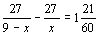 表示.题目的前一句话中隐含了二人速度之间的关系,27千米的路程,二人用3小时相遇,就是说二人的速度和是每小时9千米,如果设甲每小时走x千米,那么乙每小时走(
