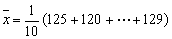 例2 从某校学生某次数学测验的成绩中,任抽了10名学生的成绩如下:125,120,129,107,125,107,120,125,133,129.估计这次参加数学测验的学生成绩的平均分。