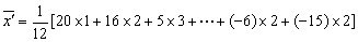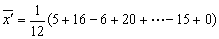 ,将上面各数据同时减去80,得到一组新数据:5,16,-6,20,16,5,-1,-15,-6,5,-15,0。