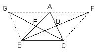 例2、如图,在△ABC中,BD、CE为△ABC的中线,延长BD到F,使DF=BD.延长CE到G,EG=CE.求证:过A、G、F三点不能作圆.