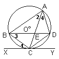 例2、(吉林省,2000)如图,△ABC内接于⊙O,AB=AC,直线XY切⊙O于点C,弦BD∥XY,AC、BD相交于点E.