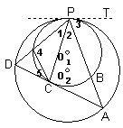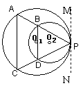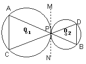 证明:过P作两圆的公切线MN,∴∠MPA=∠C,∠NPB=∠D.