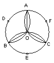 ②OA为半径画弧,把⊙O六等分,分点为A、D、B、E、C、F;
