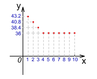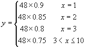 例5 某商场饮料促销,规定一次购买一箱在原价48元的基础上打9折,一次购买两箱可打8.5折,一次购买三箱可打8折,一次购买三箱以上均可享受7.5折的优惠.若此饮料只整箱销售且每人每次限购10箱,试用解析法写出顾客购买的箱数
