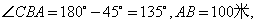 例1.如图所示,在斜度一定的山坡上的一点A测得山顶上一建筑物顶端C对于山坡的斜度为15°,向山顶前进100米后,又从B点测得斜度为45°,设建筑物的高为50米.求此山对于地平面的斜度的倾斜角