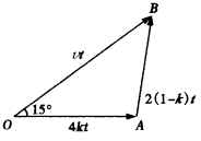 例2.在一个很大的湖岸边(可视湖岸为直线)停放着一只小船,由于缆绳突然断开,小船被风刮跑,其方向与河岸成15°,速度为