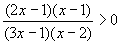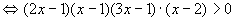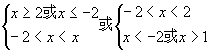 顺次标上数轴.然后从右上开始画线顺次经过三个根,其解集如下图的阴影部分.