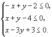 下方的区域(包括边界),即位于原点的一侧,同理可画出其他两部分,不等式组所表示的区域如图所示.