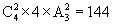 (4)第一号房间1人,第二号房间3人的不同住法总数为: