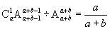 例5 抽签口语测试,共有a+b张不同的考签,每个考生抽1张考签,抽过的考签不再放回,某考生只会考其中的a张,他是第k个抽签的,求该考生抽到会考考签的概率.