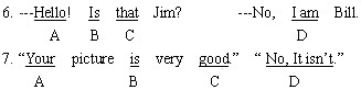 解析:在改错题中,还应该注意习惯用法及常识性错误。在用英语打电话时,习惯上用This is…向对方介绍自己,而不用I am,故应将例6 D处的I am改为this is。英美人对于别人的赞美,一般是直截了当地表示感谢,而不能按中国人的习惯,用no之类应答。例7 D处应改为Thank you。