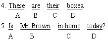 解析:单词拼写及词组搭配错误在改错题中较为常见。例4错在D处,box的复数形式应为boxes;例5错在C处,in home可改为at home或去掉home。