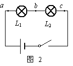 例题:如图2所示,两个灯泡组成串联电路,电源电压是6V.闭合开关S后,两灯均不发光,用一只理想电压表测量,电路中ab间的电压为零,bc间的电压为6V.则电路中的故障可能为: