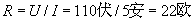 例1 有一只弧光灯,正常工作电流为5安,电阻为8欧,要把它接入电压为110伏的电路中,需要串联一个多大的电阻,弧光灯才能正常工作?