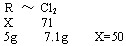只有一种相对原子质量大于50的金属和一种相对原子质量小于50的金属按照一定比例组合成合金,其平均相对原子质量才能为50。由Cu、Zn组成的合金就不合题意。上述的计算是以二价金属为标准进行的。若不是二价金属可以按反应中消耗氯的量进行转换。以金属铝为例,71g氯气消耗金属铝18g,所以若把金属铝作为二价金属对待,则相对原子质量可取为18。同理,钠作为二价金属对待,相对原子质量可取为46。铁与氯气反应时为三价,若作为二价,相对原子质量可取为37.3。在转换后,才能根据组成平均相对原子质量为50的合金时,对各成分金属相对原子质量要求进行比较,只有D选项合理。