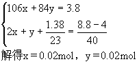 依据钠元素守恒,金属钠、碳酸钠与碳酸氢钠中钠原子的总物质的量等于8.8g固体中氢氧化钠的物质的量,可以列方程组: