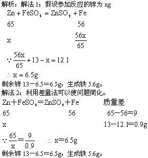溶液中一段时间后取出,称其质量变为12.1g,求生成的铁是多少克?锌是否全部反应,若未完全反应,剩余锌多少克?