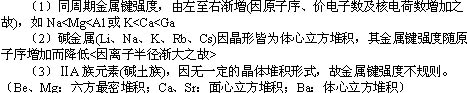(1)价电子数愈多(原子序愈大),则受原子核引力愈大,金属键愈强