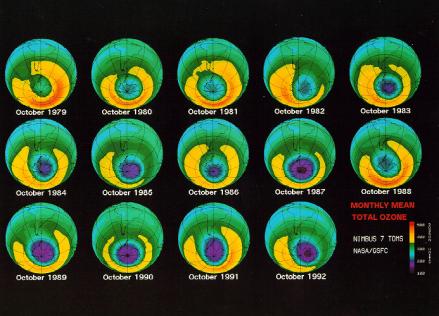 为了保护臭氧层免遭破坏,于1987年签定了蒙特利尔议定书,即禁止使用氟氯烃和其他的卤代烃国家议定书。然而,臭氧层变薄的速度仍在加快。不论是南极还是北半球的中纬度地区,