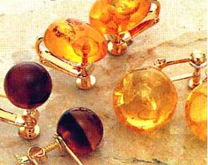 琥珀:是由C、H、O组成的有机物,也含有Al、Mg、Fe、Mn等微量元素。琥珀有各种不同的外形,如肾状、结核状、瘤状、圆盘状。唬珀很软, 其硬度为2-2.5,也比较轻, 相对比重为1.05-1.09,树脂光泽,透明至半透明。琥珀的颜色也多种多样,常见金黄、黄至褐色、浅红、橙红、黑色等,蓝、浅绿、淡紫色少见。琥珀加热至150℃变软,开始分解,在250℃时就会熔融,产生白色蒸汽,并发出一种松香味。 最丰富也最有意义的是琥珀内部的包裹体,有植物包体,如伞形松、种子、果实、树叶;也有动物包体,如甲虫、苍蝇、蚊子、蚂蚁、蚂蜂等。有气液两相包体,如圆形、椭圆形的气泡和液体;有旋涡纹,多分布在昆虫包体的周围,这是昆虫挣扎时留下的痕迹;还有许多的杂质,如泥土、沙砾和碎屑。这些丰富的包裹体不仅构成了美丽的图案,也为科学地研究当时环境提供了最直接的证据。目前,科学家们已成功地从琥珀所含的化石中提取出一些生物的遗传密码DNA,这对生物演化的研究产生了巨大的影响。美国科幻影片《侏罗纪公园》的故事就讲述了科学家在琥珀中包裹着的一只吸了恐龙的血的蚊子中提取了DNA,然后利用遗传工程繁殖出恐龙,最后恐龙成灾.....。