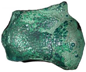 孔雀石: 成分为 Cu2(OH)2CO3,由含铜矿物受碳酸及水的作用而形成,光泽似金刚石,色翠绿,间有呈孔雀尾之彩纹。