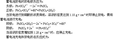 板上有一层棕褐色的PbO2,负极是海绵状的金属铅,两极均浸在一定浓度的硫酸溶液中,