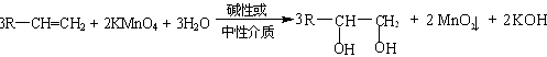 在碱性条件下,KMnO4可将双键氧化,实际上是加成反应,可以看作是特殊的加成反应