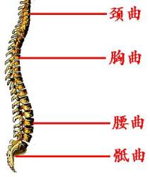 人体的脊柱从侧面观呈“S”形,有四个生理弯曲,即颈曲、胸曲、腰曲、骶曲。其中颈曲和腰曲凸向前方,胸曲和骶曲凸向后方,这样便加大了胸腔和盆腔的容积。人类脊柱的弯曲是人体直立行走的结果。四足动物的脊柱弯呈“拱”状,架在前后肢上,承担着躯干的全部重量;类人猿的脊柱弯曲与人的相近,只是腰部前凸不如人的明显。从个体发生上看,这些弯曲也是在直立姿势影响下产生的。人类由于直立行走 使脊柱的外形得到改建。婴儿脊柱的胸曲和骶曲在胚胎时即已形成。出生后三个月,随着婴儿学坐和抬头出现了颈曲,约一岁半左右,当婴儿学站立和走路时则产生了腰曲。这些弯曲使脊柱像一个大弹簧一样,能缓冲人在行走和跑跳过程中从脚上传来的震动和冲击,使脑组织不至于受到损伤。有人曾测定,在急行跳远的最后一步踏跳中,地面给人体的垂直反作用力可高达4 000牛顿左右,如果人的脊柱是根“直棍”,那么,这么大的冲击力就会不折不扣地上传到脑,引起剧烈振动,脑组织就会受到损伤,人非昏迷不可。由于“S”形脊柱的缓冲,延长了力的作用时间,当地面对人体的反作用力传到头部时,其作用力量已很小了。所以人从事剧烈运动时,一般不会震坏脑。另外,腰曲使身体重心的垂线后移,有利于维持身体前后平衡,保持直立姿式,加强稳固性。