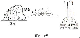 观其构造,足存在着三个足弓,即内外侧二个纵弓和一个横弓。内侧纵弓由跟骨、 距骨、舟骨、三个楔骨及三个蹠骨所组成,高约5~7厘米。外侧纵弓由跟骨、骰骨 及第4.5蹠骨组成。高约2厘米。两弓前部系并列,而后部则内侧纵弓之距骨骑在 外侧纵弓之跟骨上,因之足之前部阔而向后渐窄。横弓由五个蹠骨并列形成(图2)。
